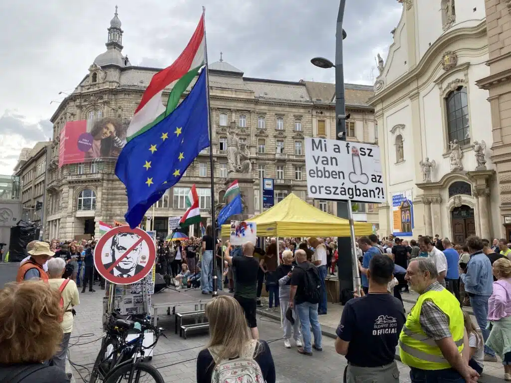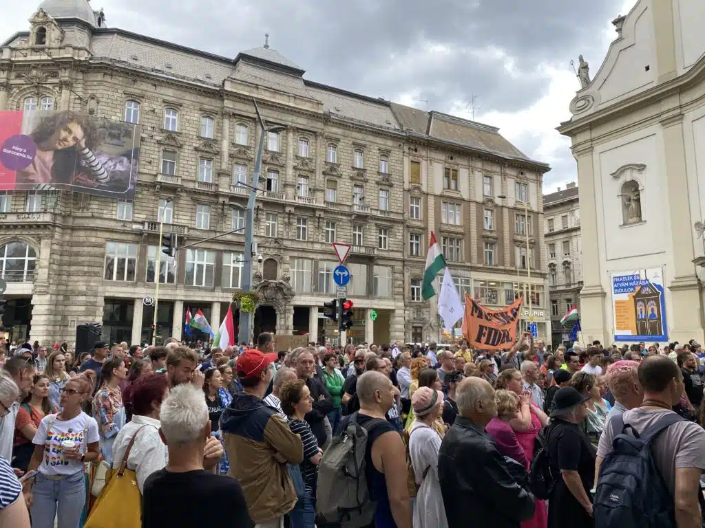 Il y avait foule dans les rues en ce 23 octobre, jour férié commémorant la révolution de 1956 contre les communistes. Cette date symbolique a été choisie par le Tisza et le Fidesz pour lancer leur campagne électorale. Si les deux partis affirmaient manifester pour défendre leur vision de la Hongrie, ces rassemblements avaient avant tout pour but de mesurer leur popularité à l’approche des élections législatives.