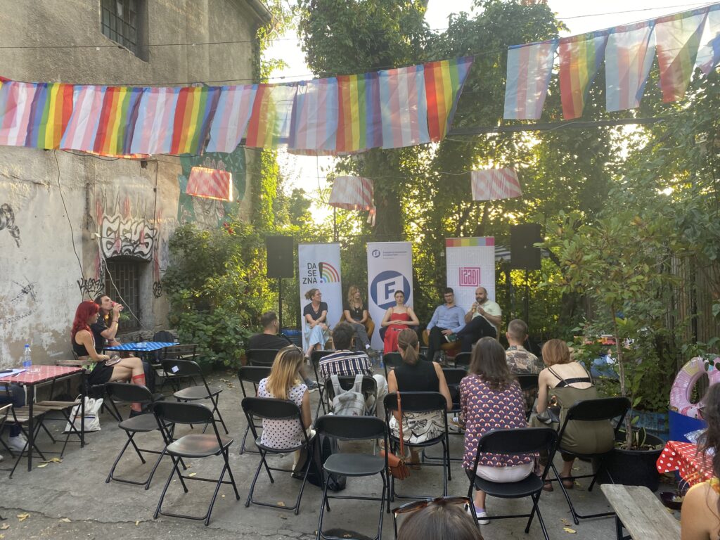 « Je suis partagé entre un sentiment d’immense fierté pour ce que nous faisons et un peu d’anxiété liée à la sécurité de l’événement. » Par ces mots, Aleksa a résumé à lui seul l’atmosphère de cette Pride 2025. Nous l’avons rencontré le vendredi précédent la marche à la « Pride House », le lieu choisi par les organisateurs pour préparer la marche et organiser des événements lors de la semaine des fiertés.